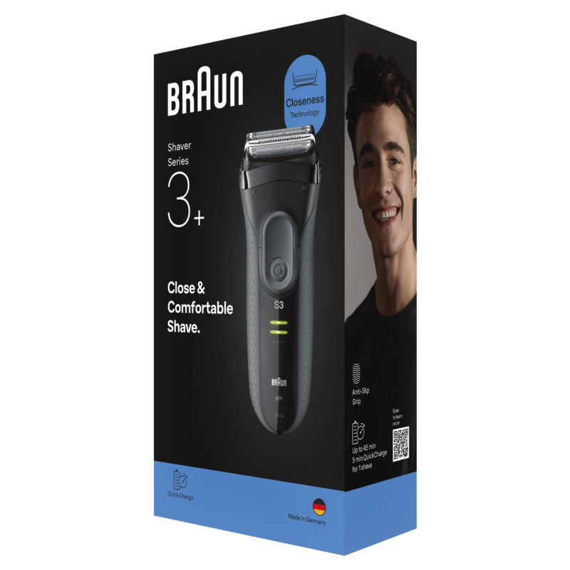 Täpsus igas detailis: Series 3+ pardlil on habemetrimmeri otsik põskhabeme või vuntside täpseks kujundamiseks ning kitsas raseerimispea, mis võimaldab lihtsat raseerimist ka raskesti ligipääsetavates kohtades, näiteks nina all.