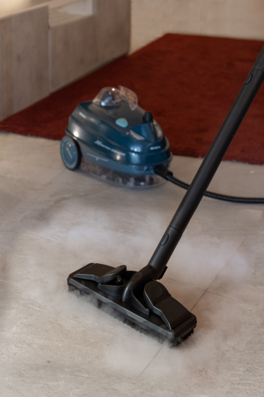 Uus teisaldatav aurupuhasti millel käepärane tarvikute sahtliga kohe põhja all. Tänu kuumaauru loomulikule jõule saata puhastada kõik majapidamispinnad, tagades maksimaalse hügieeni, ilma keemilisi puhastusvahendeid kasutamata: plaadid, klaaspinnad, parkett, marmor, vaibad. Lai lisavarustus võimaldab akende ja igat tüüpi pindade täpset puhastamist.