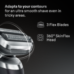 • Tõhus isegi karmidel habemetel: SensoAdapt-tehnoloogia tuvastab habeme tiheduse ja kohandub vastavalt sellele, haarates ja lõigates iga liigutusega rohkem karvu