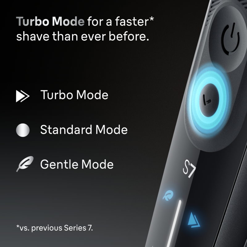 • 3 raseerimisrežiimi. Braun Series 7-l on 3 raseerimisrežiimi. Turbo režiim kiiremaks raseerimiseks (võrreldes varasemate Series 7 mudelitega), õrn režiim meeldivaks raseerimiseks ning standardrežiim optimaalse tasakaalu saavutamiseks kiiruse ja õrnuse vahel.