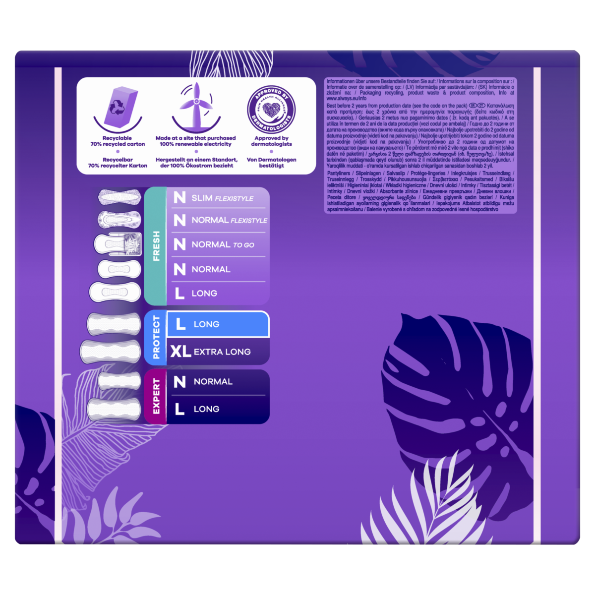 - Pikad pesukaitsed pakuvad lisakatvust võrreldes Always Daily Fresh Normali pesukaitsetega.