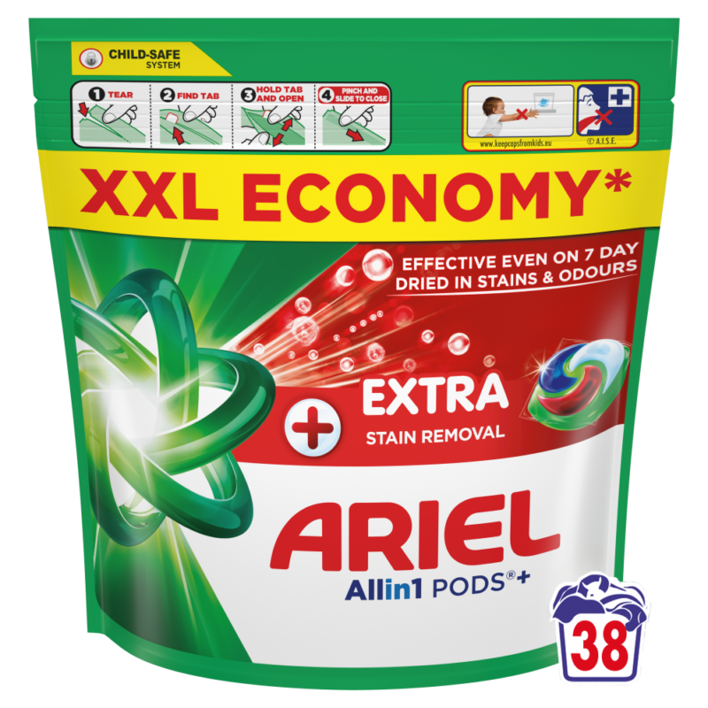 Whirlpooli, Electroluxi, Candy ja Beko poolt soovitatud kaubamärk Ariel esitleb Arieli Allin1 PODS+ pesukapslites pesuvahendit + Täiendav Plekke Eemaldav Toime, Arieli kõigi aegade parimaid Allin1 PODS+ pesukapsleid! Tänu lisatud punasele kambrile toimivad need külmas vees isegi 7 päeva sissekuivanud plekkide korral. Need on loodud toimima suurepäraselt ka külmemates tsüklites, lahustuvad kiiresti isegi külmas vees ja tagavad laitmatud tulemused. Parimate tulemuste saavutamiseks pane kapslid esmalt tühja trumli tagaossa ja aseta riided peale. HOIATUS: toode võib olla kahjulik ja põhjustada raske vigastuse. Ariel Allin1 PODS pesukapslites pesuvahendit tuleb alati hoida lastele kättesaamatus kohas. Lisateavet leiad aadressilt keepcapsfromkids.eu.