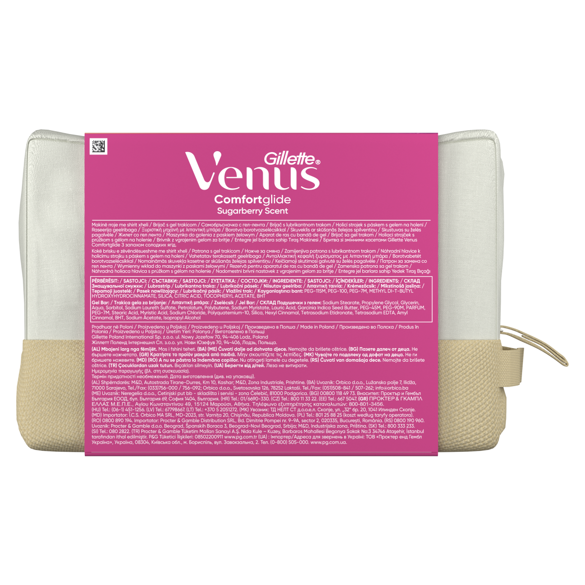 Comfortglide Festivali kinkekotiga on kaasas raseerija koos 2 taastäidetavat 5 teraga žiletitera. Venuse naiste habemenuga terad on loodud naise keha silmas pidades. Naiste pardlitel Venus Comfortglide Sugarberry plus Olay on 5 tera, mis tagavad püsiva ja sujuva ja tiheda raseerimise. Raseerimistera täidised on varustatud Olay Moisture Bars’idega, mis vabastavad kerge suhkrumarja lõhnaga kehavõid, mis tagavad libisemise ja mugavuse. Pöörleva disainiga, mis kohandub teie keha kontuuridega. Iga Veenuse tera täidis sobib iga Venuse habemenuga (välja arvatud lihtsalt Venuse ja Venuse häbemekarvad ja nahk).