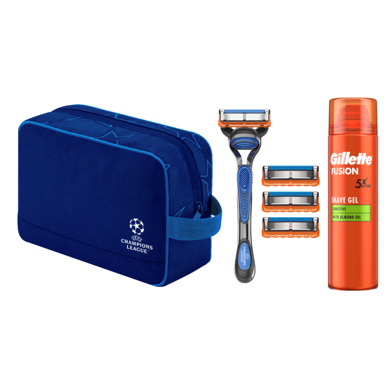 Gillette UCL Fusion h+4 blades, 200 ml Sensitive Gel XMAS25