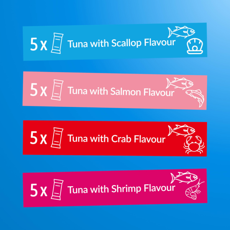 Tuunikala (30,0%), tapiokk (kuivatatud), krevetipasta (0,6%), kollageen.