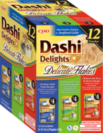 Dashi Delightes – siidine puljong sametise Dashi puljongina kanatükkidega ja Dashi Delightes pehmed helbed, mis on pehmete želeetaoliste kanatükkidega täis Dashi maitset, saadaval 12 x 40 g pakendites!