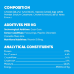 Koostis: Kana (58,0%), tuunikala (13,5%), tapiokk (kuivatatud), munavalgepulber, naatriumkaseinaat, kanaekstrakt (0,65%), pärmiekstrakt.