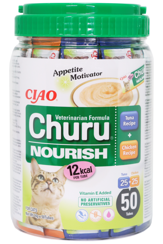 Churu Nourish on saadaval 50 tk purgis, mis sisaldab 25 kana- ja 25 tuunikalalõhna.
