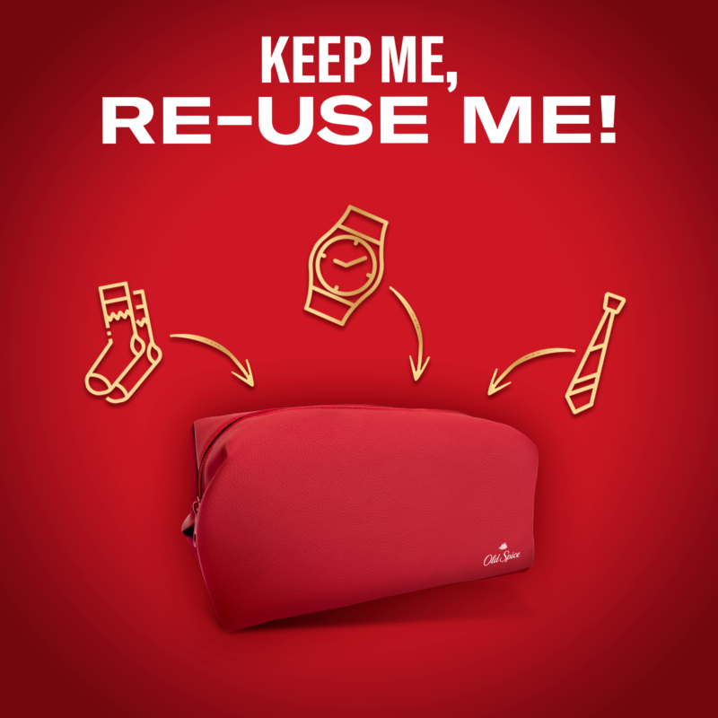 • kaunilt pakitud erilisse Old Spice’i kosmeetikakotti, mida saab korduvalt kasutada tualett-tarvete kaasavõtmiseks reisile või trenni