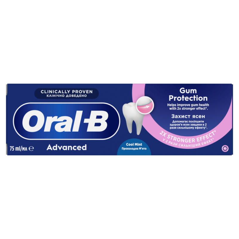 Hambapasta Oral-B Professional Gum Protection Cool Mint on kliiniliselt tõestatud: see aitab parandada igemete tervist 2 korda tugevama toimega võrreldes tavalise fluoriidhambapastaga. Oral-B ainulaadne bakterivastane tehnoloogia tinafluoriidi kompleksi ja glükonaatsooladega loob kaitsekilbi tugevamate ja tervemate igemete heaks, neutraliseerides hambakatubaktereid isegi harjamiste vahel. Igapäevane hambapasta.