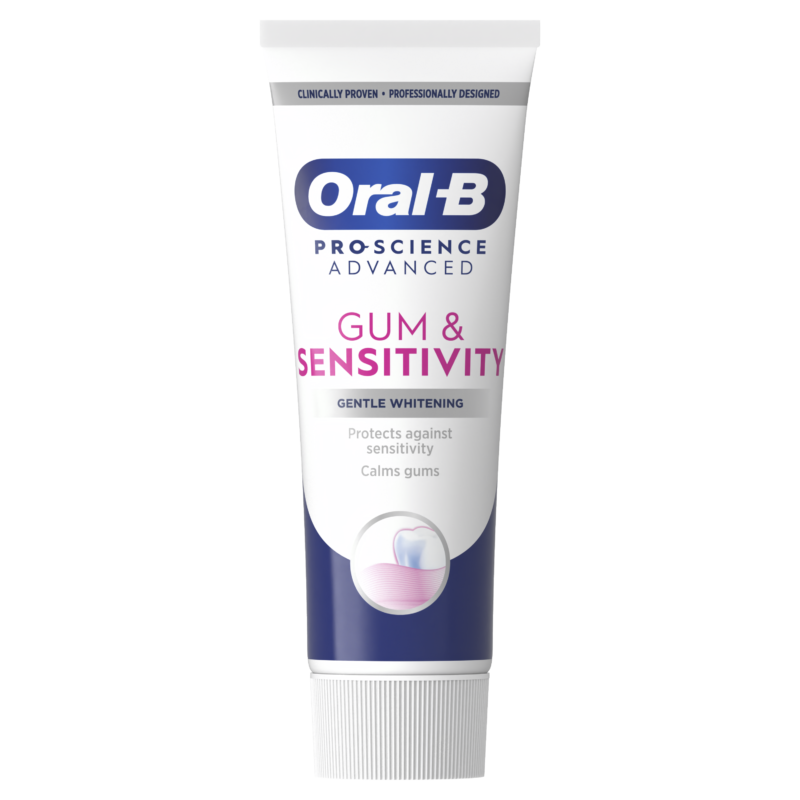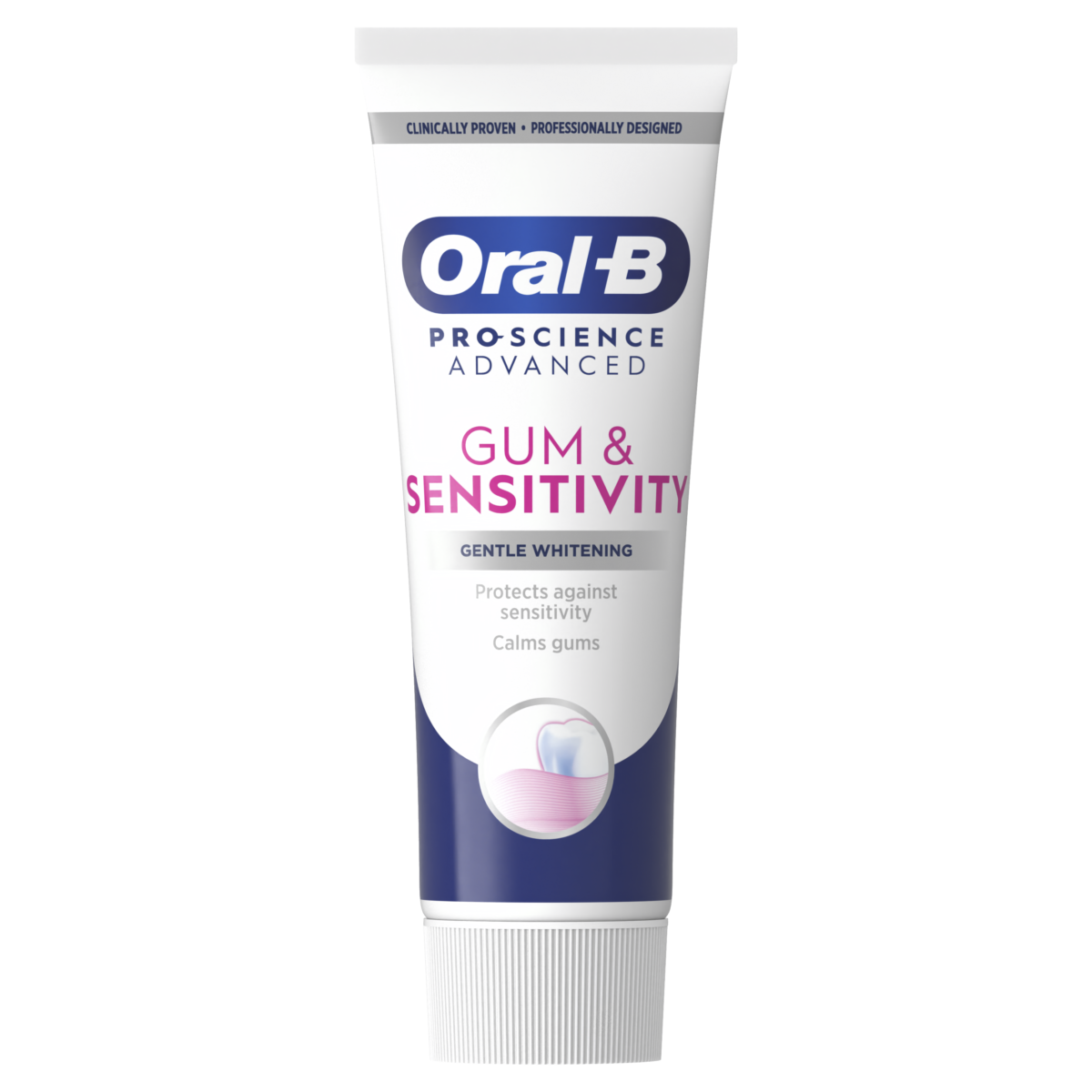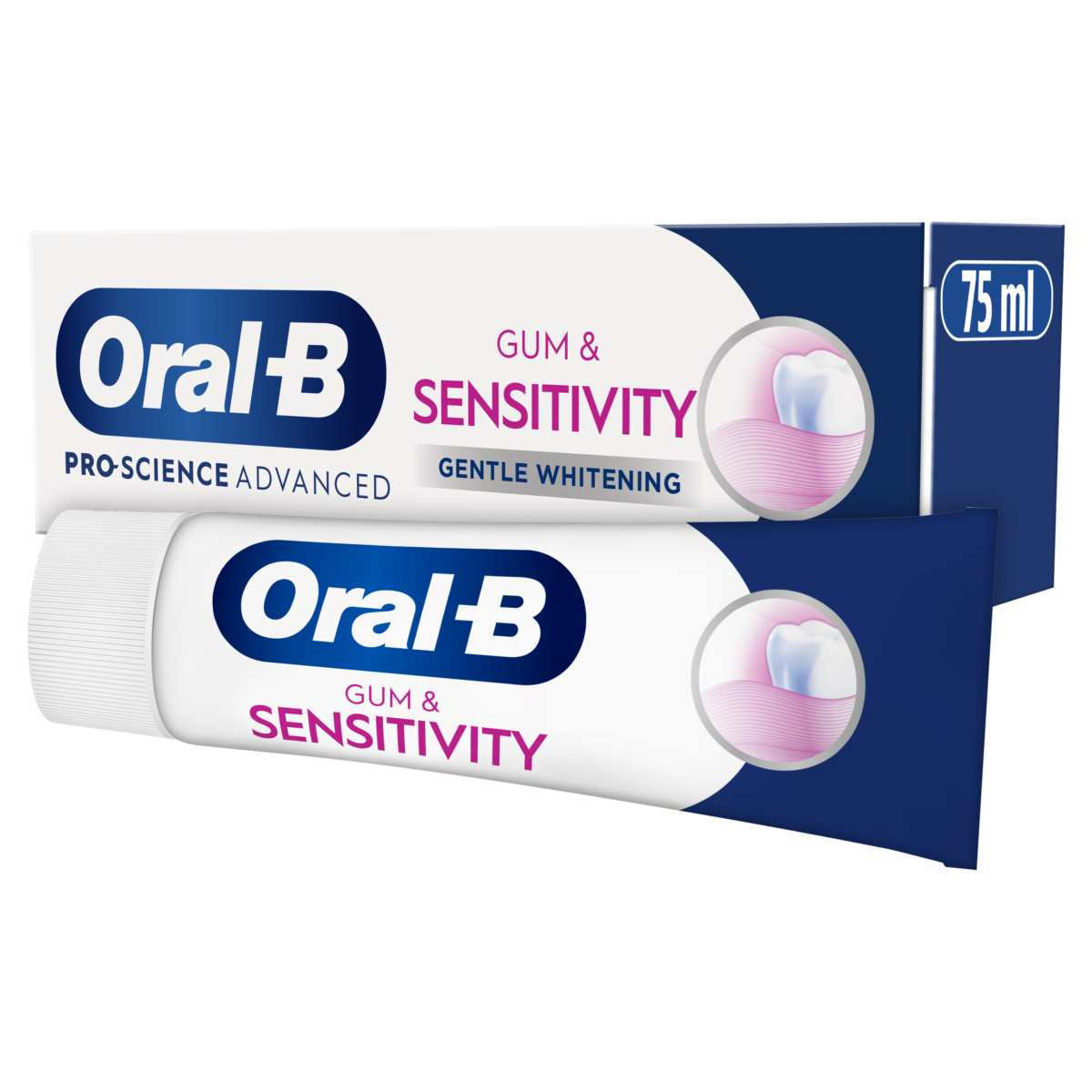 Oral-B Pro-Science Advanced Gum & Sensitivity Gentle Whitening hambapastal on kliiniliselt tõestatud kaitse tundlikkuse vastu ning see rahustab igemeid, et tekitada suus mugav tunne. Selle ainulaadne Activcalmi tehnoloogia loob kaitsekihi tundlike hammaste kaitseks, jahutab igemeid harjamise ajal ja järel ning pakub tänu õrnale vahule tõhusat leevendust.