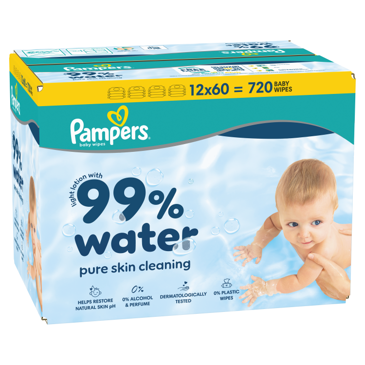 Pampers 99% vett – kerge ihupiim 99% veega. Pampersi beebi niisked salvrätid pakuvad õrna puhast nahapuhastust ja aitavad kaitsta sinu beebi õrna nahka tänu Pampersi spetsiaalsele koostisele, mis aitab taastada naha loomulikku pH-d ja kaitseb nahka punetuse eest. Need on valmistatud 0% alkoholi ja parfüümiga. Koostis on dermatoloogiliselt testitud. See on saanud Skin Health Alliance’i dermatoloogide heakskiidu.