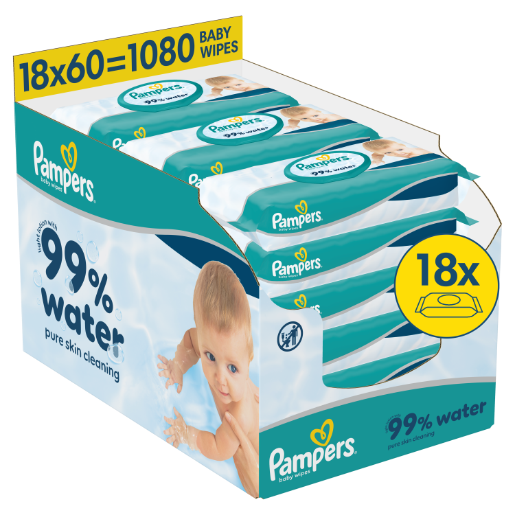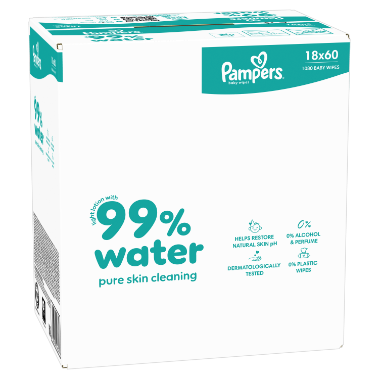 Pampers 99% vett – kerge ihupiim 99% veega. Pampersi beebi niisked salvrätid pakuvad õrna puhast nahapuhastust ja aitavad kaitsta sinu beebi õrna nahka tänu Pampersi spetsiaalsele koostisele, mis aitab taastada naha  loomulikku pH-d ja kaitseb nahka punetuse eest. Need on valmistatud 0% alkoholi ja parfüümiga. Koostis on dermatoloogiliselt testitud. See on saanud Skin Health Alliance’i dermatoloogide heakskiidu.