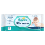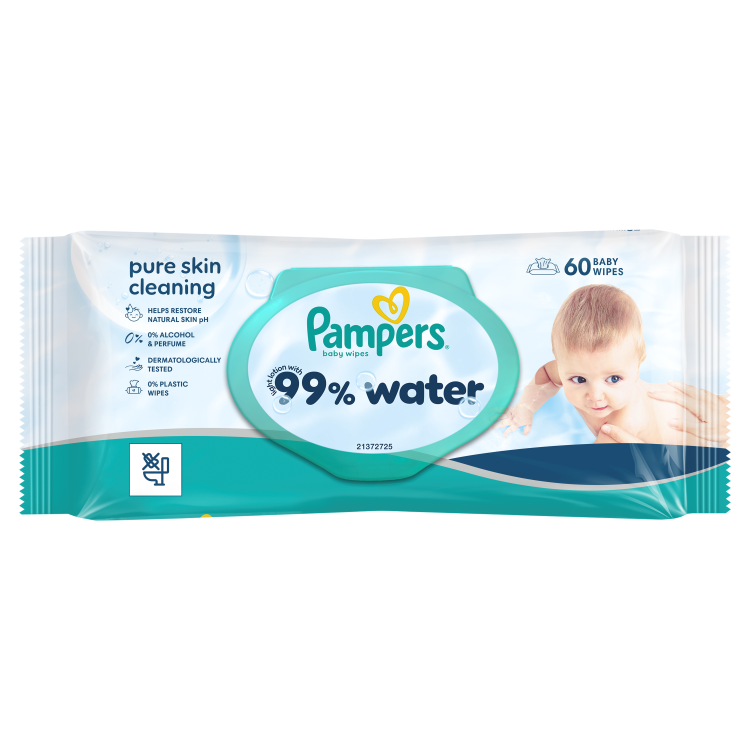 Pampers 99% vett – kerge ihupiim 99% veega. Pampersi beebi niisked salvrätid pakuvad õrna puhast nahapuhastust ja aitavad kaitsta sinu beebi õrna nahka tänu Pampersi spetsiaalsele koostisele, mis aitab taastada naha  loomulikku pH-d ja kaitseb nahka punetuse eest. Need on valmistatud 0% alkoholi ja parfüümiga. Koostis on dermatoloogiliselt testitud. See on saanud Skin Health Alliance’i dermatoloogide heakskiidu.
