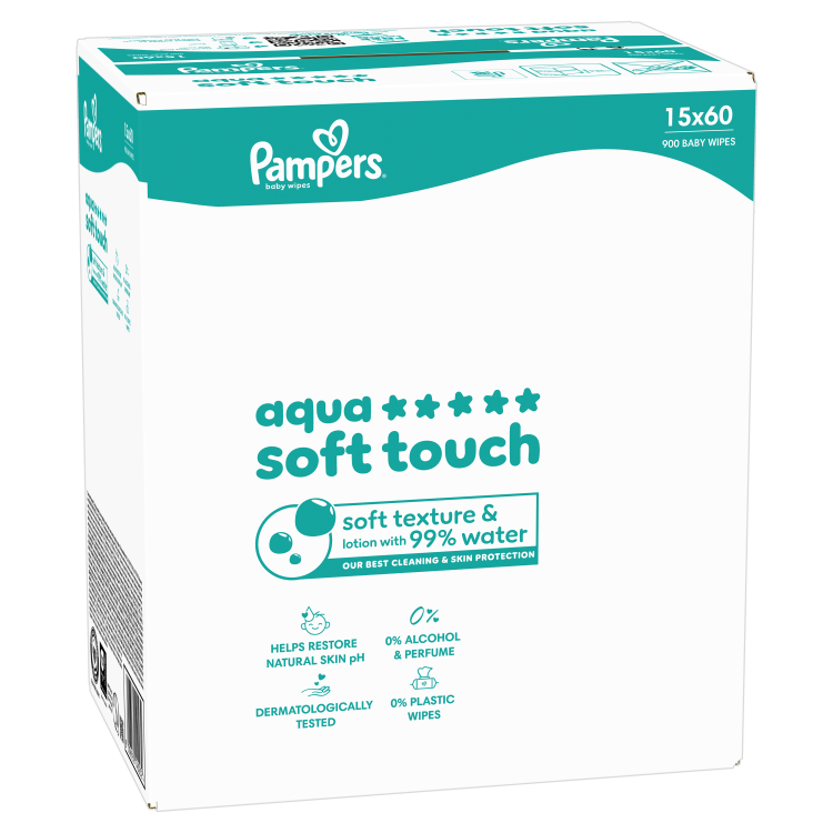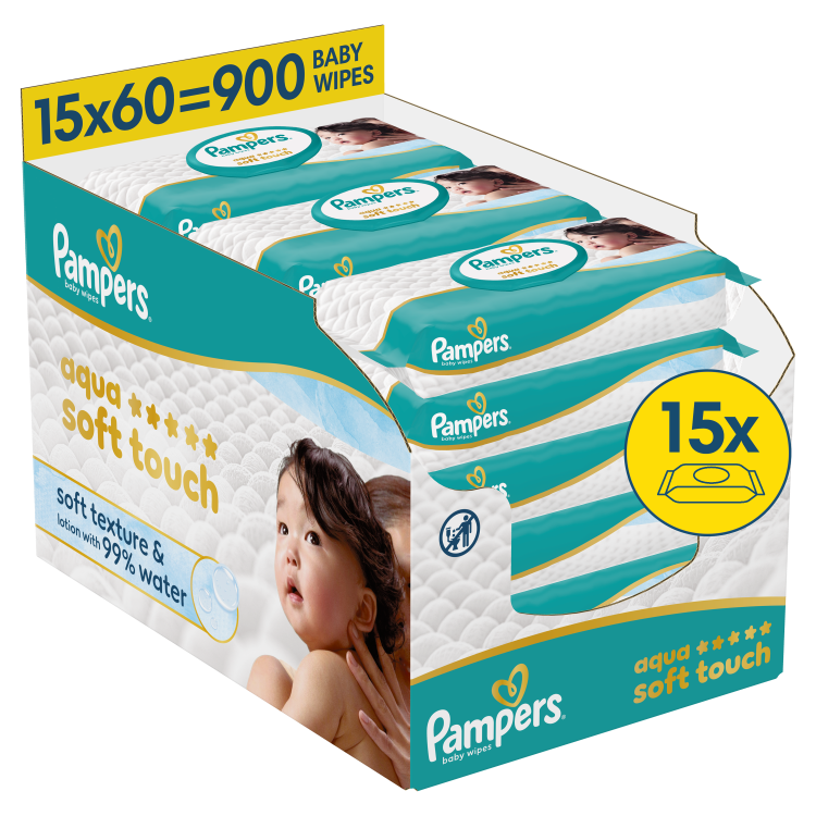 Pampers Wipes Aqua Soft Touch, 15 packs, 900 wipes