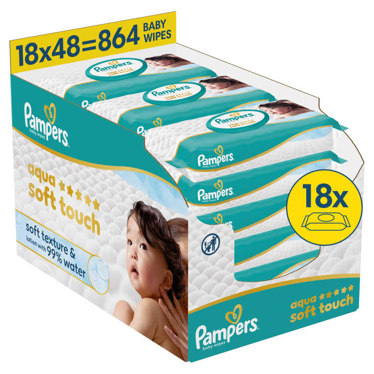 Pampers Wipes Aqua Soft Touch, 18 packs, 864 wipes