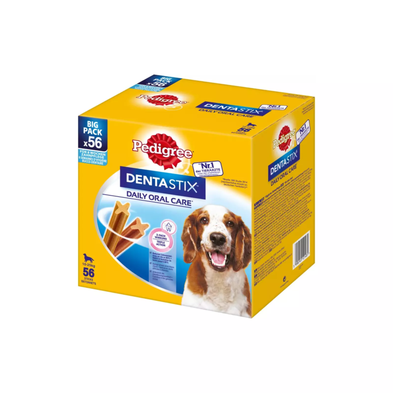 PEDIGREE® DentaStix Daily Oral Care on täiendsööt koertele alates 4. elukuust. Närimiseks mõeldud maius on sobilik ainult lemmikloomadele, kelle kaal jääb vahemikku 10–25 kg. See maius mõjub positiivselt koera hammastele ja igemetele – puhastab, vähendab hambakattu ja toetab suuõõne tervist. PEDIGREE® DentaStixiga hoolitsed tõhusalt oma koera tervise ja elujõulisuse eest.