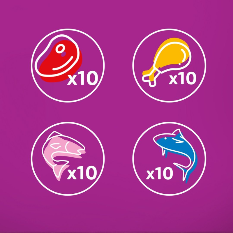 Whiskas kana, lõhe, veiseliha, tuunikala 40x85g