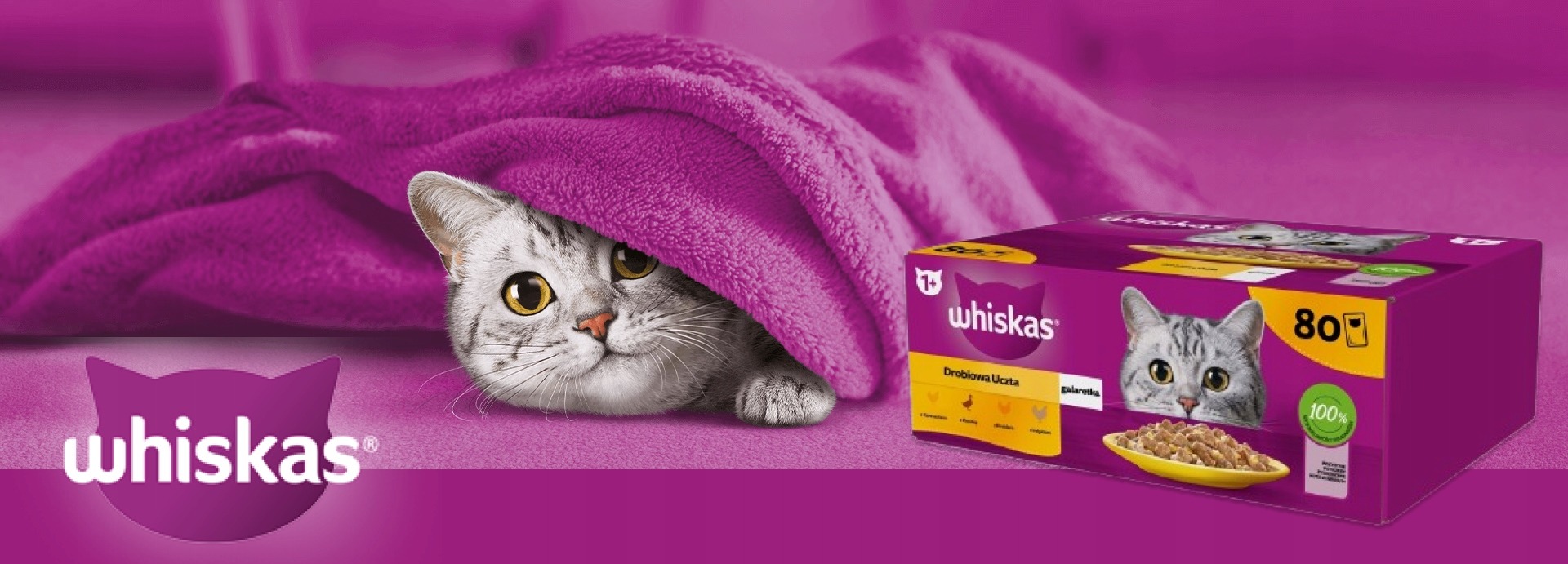 WHISKAS Adult Pouches 80 x 85g Poultry Feast – Märg Toit Täiskasvanud Kassidele Kastmes (kana, part, linnuliha, kalkun)